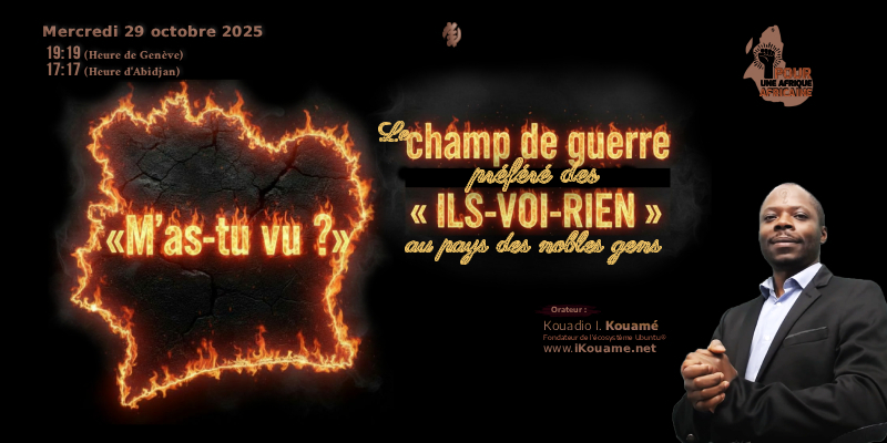 Ce message historique sera adressé au peuple de Côte d'Ivoire ce mercredi 22 octobre 2025 à 17h17 (heure d’Abidjan) / 19h19 (heure de Genève) par Kouadio I. Kouamé — fondateur de l’écosystème Ubuntu® et du Commun Politique « Akwaba ! Ré-évolution Ubuntu pour l’Afrique africaine ».